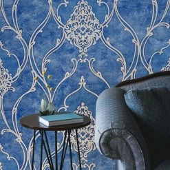Hot Sale โ Slavyanski Wallpaper Damask Wallpaper Blue Silver Metallic Textured Victorian 3D, 42 Inc X 33 Ft Roll ๐