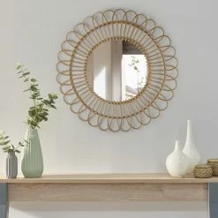 Best Pirce 🔥 American Art Decor, Inc. Woven Rattan Sunburst Accent Wall Mirror 25″ ✔️