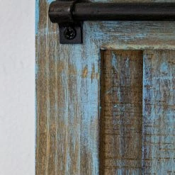 Fashioned to resemble a shuttered window or door panel, this country rustic piece is a lovely reminder that good days still lay ahead. The alluring turquoise color mixes well with the weathered and distressed look of the wood, creating a very attractive and captivating piece that was made for your farmhouse themed home. Plus, the long metal rod that sits atop the piece adds an extra layer of vintage and antique appeal.