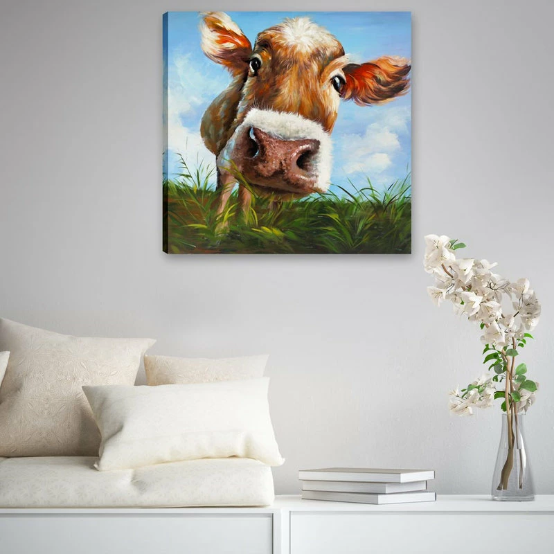 Be the first to review “Cheap 👍 ArtMaison Canada 24″x24″ Cute Cow Face Canvas Wall Art Print Blue Green Brown ⌛” Cancel reply