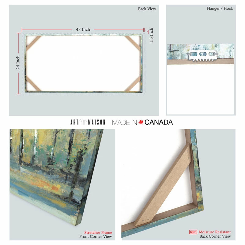 This is a beautiful canvas print wall art in size 24″ high by 48″ wide. It has a rich texture that will enhance space. The artwork is stretched on solid MDF. It has one saw tooth hanger and depth of 1.5 inches. Made in Canada, it is packaged with care and is shipped to you, ready to hang on your wall. Brought to you by ArtMaison Canada.