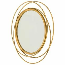 With its lovely round shape and gold finish, this mirror is an enchanting sight to behold in any space. The curves accenting the mirror glass are crafted from metal and let it blend with many decor styles. Hang it on your bedroom wall, living room, or bathroom easily in minutes.
