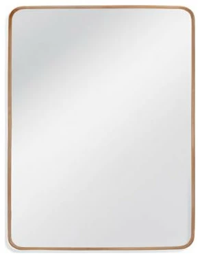 The Giles wall mirror features the softness of rounded corners together with the warmth of a brass metal frame that allow it to easily fit into any space in the home. The recessed mirror glass adds to the depth and luxurious feel of this versatile and yet minimalist accent piece. Double “D” ring mounting hardware allows hanging in both orientations