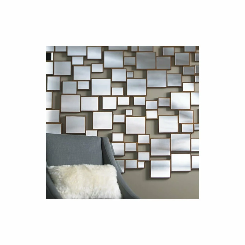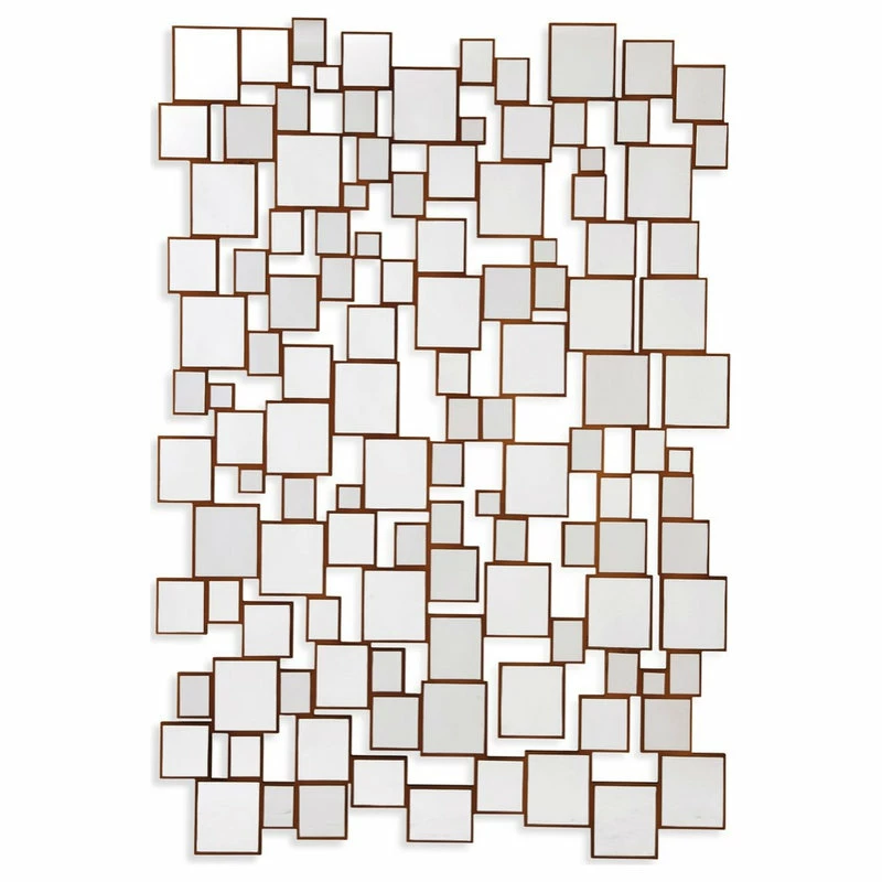 Combine a reflective surface and modern art with the Illyria Wall Mirror. It comes in the form of a unique, scattered composition with delicate gold framing that brings any space to life. Placed in a bedroom, entryway or living room, this contemporary creation is bound to catch the eye. Its bold geometric shapes create movement for a burst of energy that cannot be ignored.