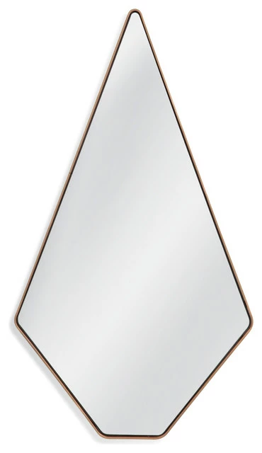 The Sophia Wall mirror features a modern tear drop shape with a simple metal gold frame.