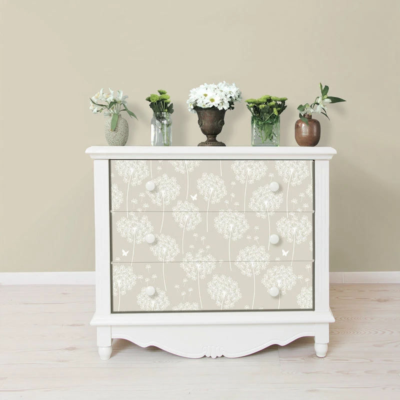All of your home decor wishes can come true with this peel and stick dandelion wallpaper. The days of spending hours rolling paste out are over. Now all you have to do is remove the backing and apply this magical paper to your walls. Goes up in minutes, removes in seconds-damage free. Comes on a 20.5 in x 18 ft roll.