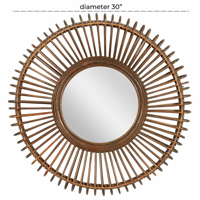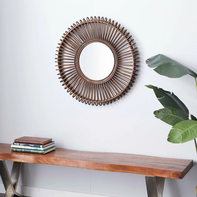 This elegant wall mirror will work well in any room of your boho chic style inspired home. This item ships in 1 carton. Easily hanging using hanging hardware on the back; nails and screws are not included. Suitable for indoor use only. Made in Vietnam. Bohemian style.