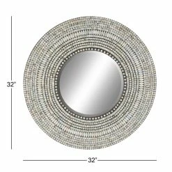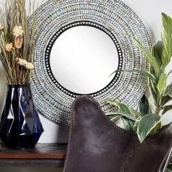Add flair to your lobby, living room, or bedroom with this multicolor round wall mirror that reflects your style and helps bounce light around your space. This item ships in 1 carton. Due to the handmade nature of this item, no two will be alike, there will be slight differences in shape, size, and color. This coastal decor is easy and ready to hang by the D-ring hook in the back; nails and screws are not included. Suitable for indoor use only. Made in Vietnam. This is a single wall mirror. Coastal style.