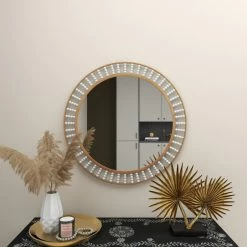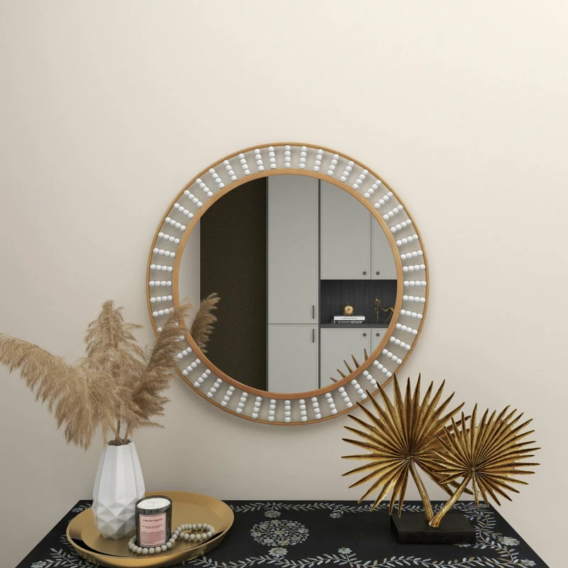 The large framed wall mirror has an elegant design that makes them an ideal piece for living rooms, entryways, and bedrooms. This item ships in 1 carton. Due to the handmade nature of this item, no two will be alike, there will be slight differences in shape, size, and color. Easy to hang feature with a loop hook at the back; nails and screws are not included. Suitable for indoor use only. This is a single wall mirror. Contemporary style.