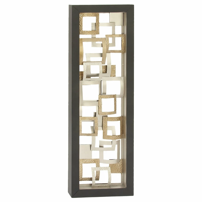Contemporary style inspired wall panel will add a touch of elegance in your living room when displayed on walls with matching Decor. This item ships in 1 carton. Metal circle loop for easy hang; nails and screws are not included. Suitable for indoor use only. This is a single wall decor. Contemporary style.