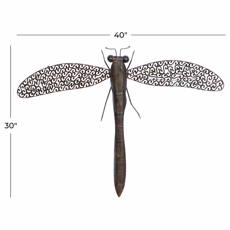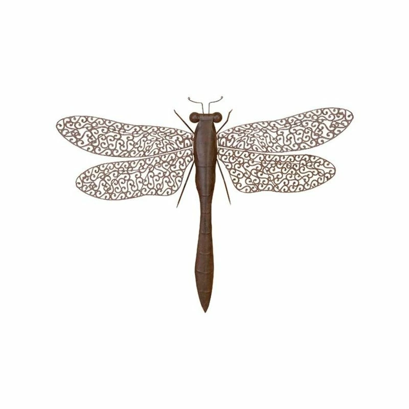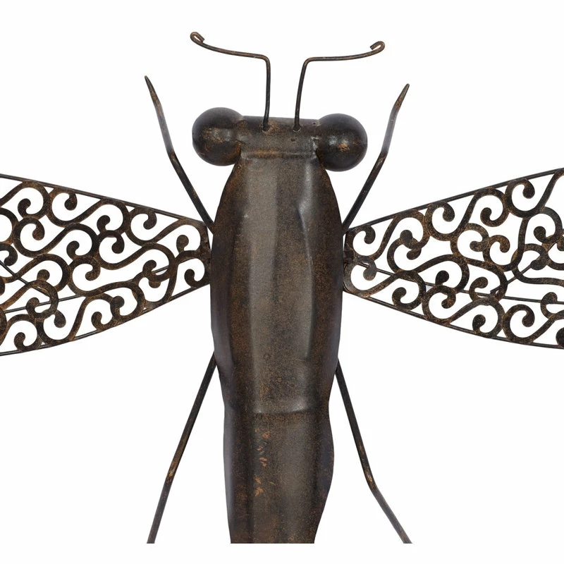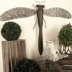 Create a balanced space in the most creative way with this expertly crafted wall decor for captivating focal point. Showcase your personality and turn your walls into an art gallery with this captivating wall decor. Striking and one-of-a-kind, this metal dragonfly wall decor will surely bring your walls to life. This item ships in 1 carton. Dragonfly wall sculpture with outstretched wings. Item is ready to hang by keyhole slot in the back; nails and screws are not included. A great versatile decor for indoor or outdoor display but are not rust or weather resistant. This is a single wall decor. Rustic style.
