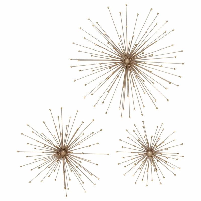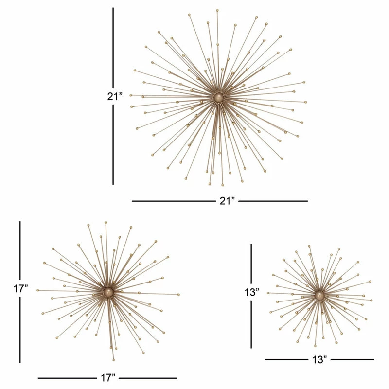 SKU: 74825 Categories: Bedroom Decor, Metal Wall Art, Wall Decor Tags: Accent decor, Art deco wall de, Contemporary wall decor, Eclectic, Eclectic wall decor, Glam wall decor, Gold glam wall design, Gold modern wall design, Gold sculpture art set of 3, Gold starburst wall art, Gold wall art set of 3, Home decor, Large metal gold wall sculpture, Modern Wall Decor, Starburst wall art, Starburst wall sculpture