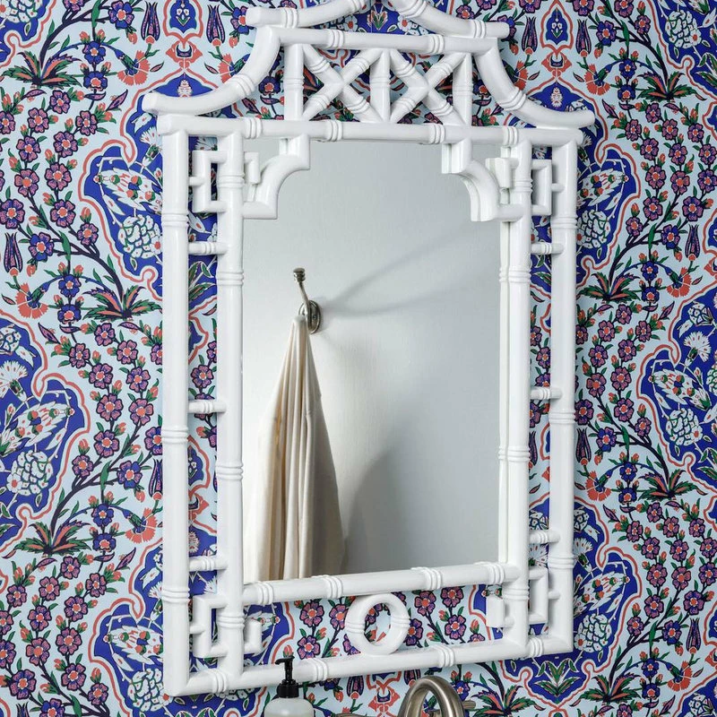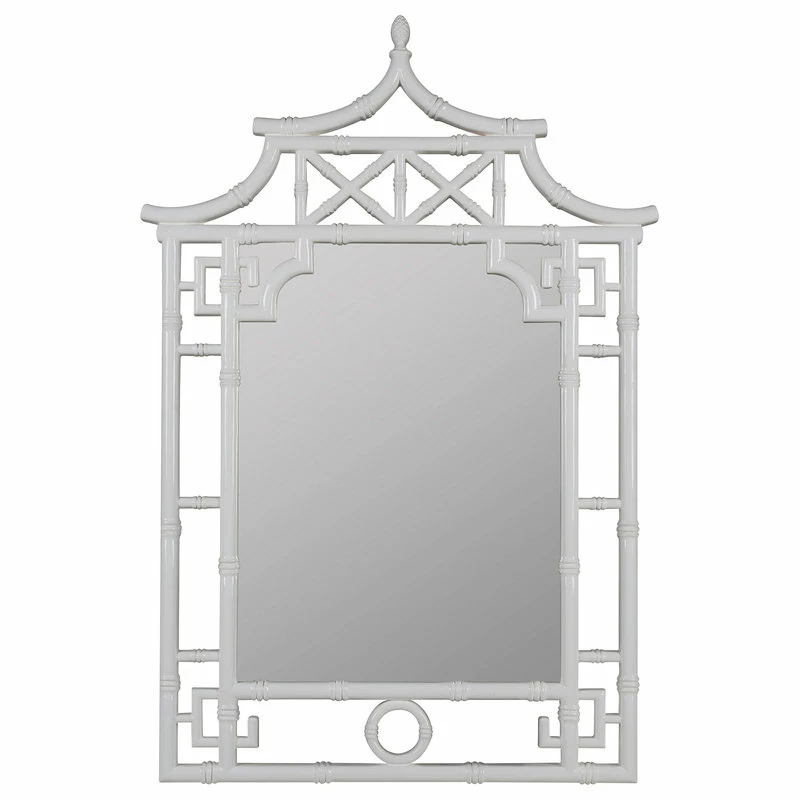 Let your home reflect a glimmer of global style in an always-chic color. The crisp, white Shing Mirror brings architecture and geometry to your design with accents inspired by Eastern rooflines. Give this jet-setting piece a home above your vanity or in your entryway to bounce a cosmopolitan light into your space.
