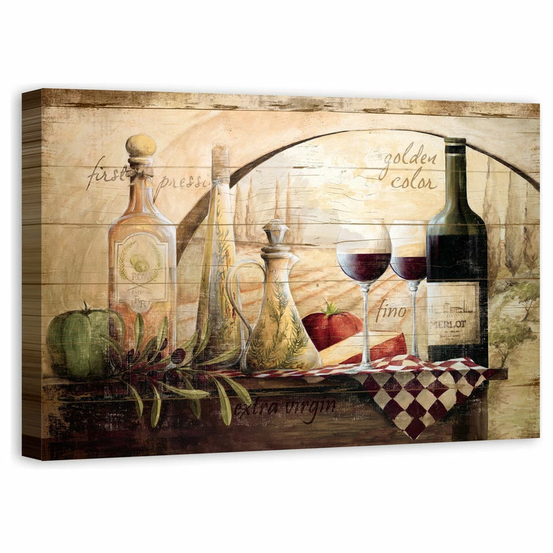 This premium gallery wrapped canvas features a vintage wood background with tuscan vinyard wine table design. The wall art is printed on professional grade tightly woven canvas with a durable construction, finished backing, and is built ready to hang. The result is a remarkable piece of wall art that will add elegance and style to any room.