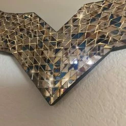 Our signature, sparkling designer wall mirror collection is back in a new, quatrefoil shape! Handmade and featuring a range of champagne & golden hues with a rainbow of shimmering, oil slick colors, this embossed mosaic glass framed wall mirror makes for a stunning accent piece in any room. Wall Art Mirror Design inspired by the Alhambra Palace in Granada, Spain. The gardens of the Generalife Complex contain a famous quatrefoil fountain that is rich with history & artistic roots. ‘La Fuentes de Lindaraja,’ can be found in the garden of Lindaraja, and has been the inspiration for artistic renderings for centuries. The natural, bright colors glimmering in the garden’s water features and the magical geometric architecture of Alhambra Palace are uniquely captured in this colorful wall mirror. At 24″, our new & unique quatrefoil mirror complements a number of colors and decor styles. Perfect as a bedroom mirror, bathroom vanity mirror, living room mirror, foyer mirror, reception office mirror, & much more. Other manufacturers mirrors may look similar, but watch out for mosaic “stickers” that make a mosaic pattern but are not actual mosaic tiles. Our handmade decorative wall mirrors contain genuine glass mosaic pieces, covering an intricate embossed foil underlayment. The result is stunning and cannot be fully appreciated in pictures alone. Perfect for any wall or room that requires an accent mirror that reflects elegance & artisan craftsmanship. This glamorous hanging wall mirror features intricate, rectangular patterned glass mosaic tiles. Each mosaic tile is hand set for an authentic look that cannot be replicated. The mosaic mirror frame provides the perfect splash of color to match existing decor. Bespoke home decor that you simply will not find anywhere else, & as always, limited quantities available for a limited amount of time. Unique, Artistic, Affordable Luxury Wall Mirror.