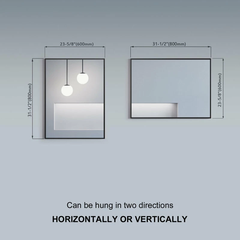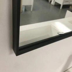 Wall-mounted rectangular mirror with metal frame is available in Black, Gold, and White. These 31-1/2″ tall mirrors are available in 16″, 24″, 30″, 36″, and 48″ widths.