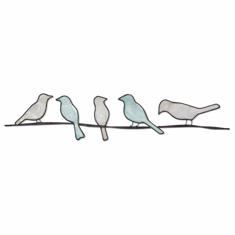 An old parable states that five birds were resting on a wire. Two decided to fly south. How many were birds are left? One’s initial answer may be three, however, the answer is still five. The moral of the fable is actions are more important than intention; a kind reminder that a truer picture of one’s character is drawn by actions. The artisan captures this parable by lining up five birds socializing on a wire.