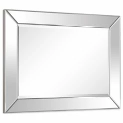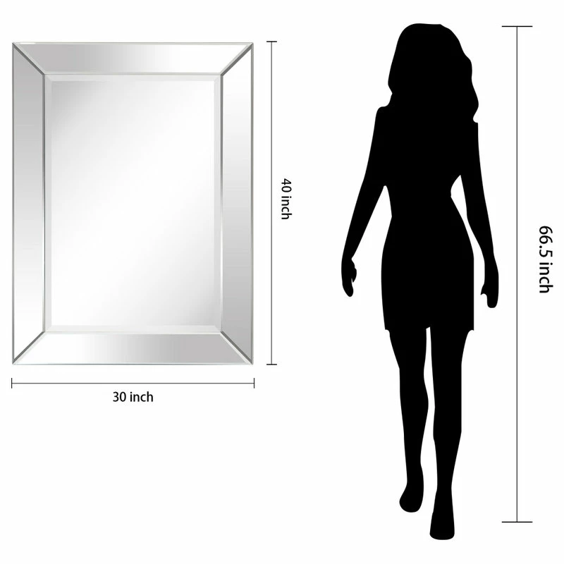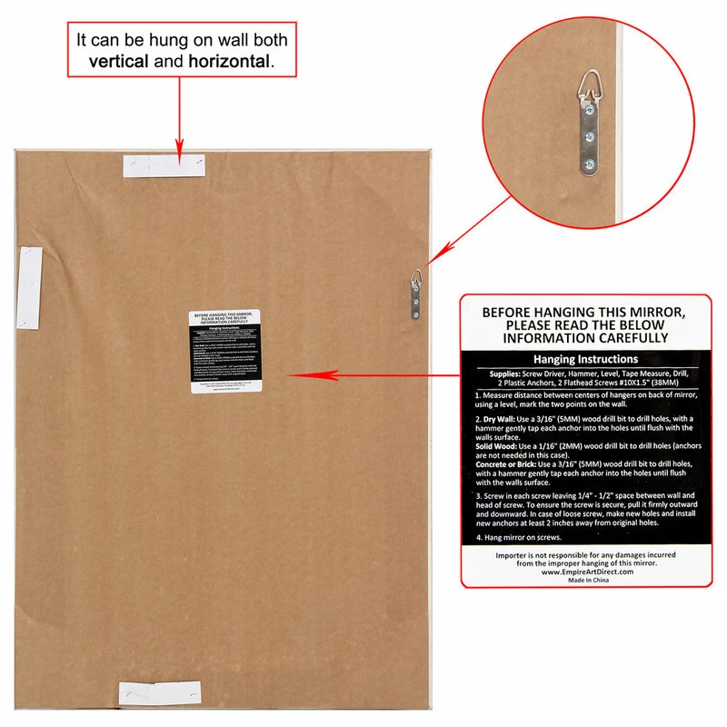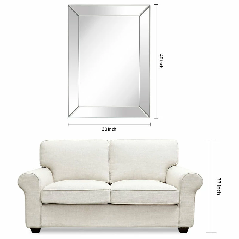 This wall mirror is ideal for adding more utility to a wall and enhancing the space of a room, making it feel larger and lighter. The mirror has a solid wood frame which will be sturdy and long-lasting, while the panels are clear mirror with a slight bevel. The bevel is 1 inch and serves to slightly extrude the mirror, giving it more texture and shape. 4 Hooks are affixed to the back of the mirror so it is ready to hang right out of the box in either a horizontal or vertical orientation! Packaged in strong carton with full protective corners and styrofoam.