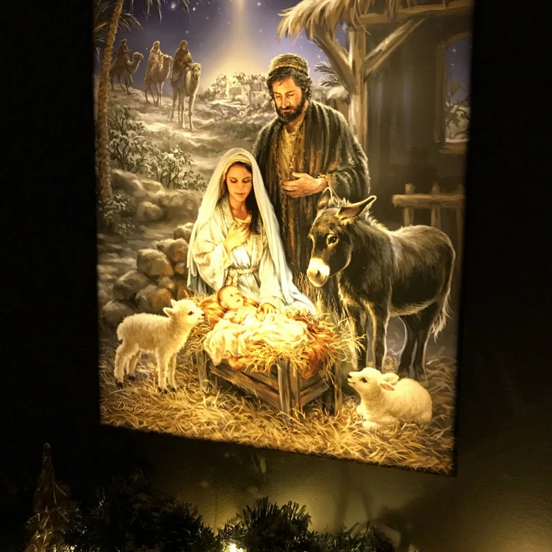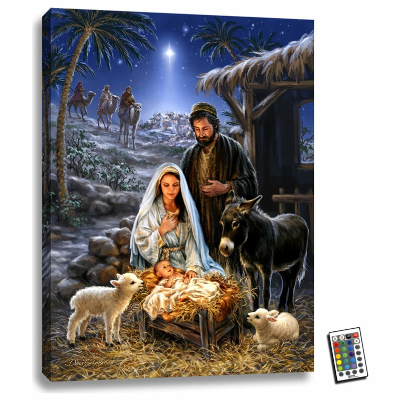 SKU: GLOW1519 Categories: Prints & Posters, Wall Decor Tags: Backlit art, Christmas decor, Christmas Wall Art, Dona gelsinger, Glow art, Glow decor, Holy family, Home decor, Illuminated art, Jesus, Jesus art, LED art, LED wall art with remote and timer, Light up art, Light up signs, Light up wall art, Made in the usa, Nativity art, Nativity painting, Navivity, Savior, Wall art, Wall decor