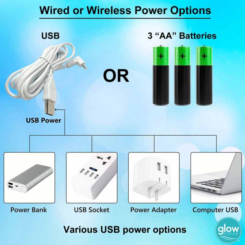 - Power by included USB Cable or AA Battery