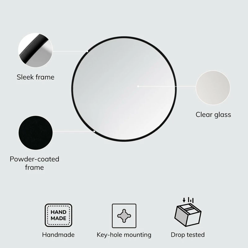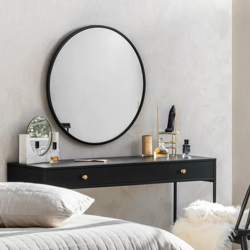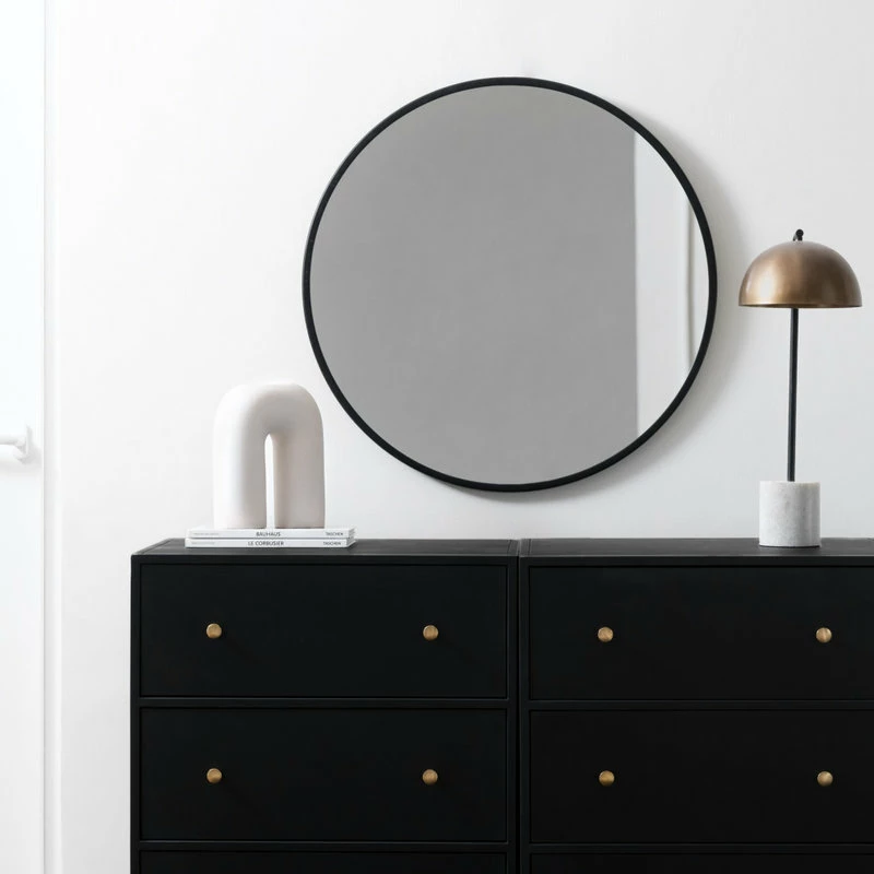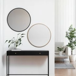 Simple and statement; this round mirror with a modern design is made to compliment every wall. With a sleek metal frame hand-turned around the clear glass, we can’t decide whether to look at or into it! Style it as wall decor in your hallway or your vanity mirror in the bedroom, it looks good everywhere.