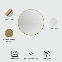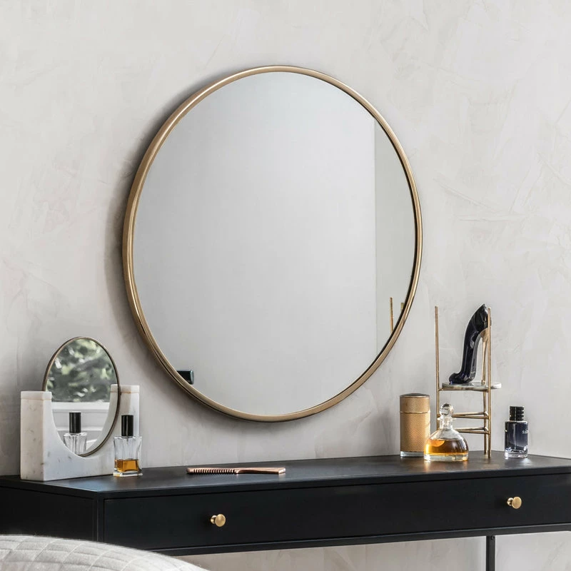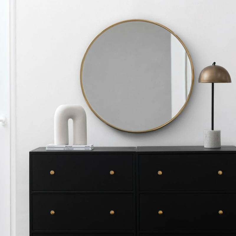 Simple and statement; this round mirror with a modern design is made to compliment every wall. With a sleek metal frame hand-turned around the clear glass, we can’t decide whether to look at or into it! Style it as wall decor in your hallway or your vanity mirror in the bedroom, it looks good everywhere.