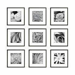 - Nine 12″x12″ frames that can be matted to 8″x8″ with the included mats