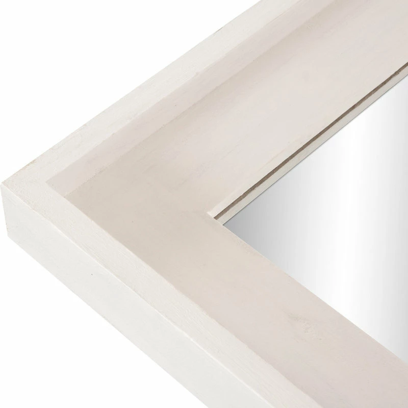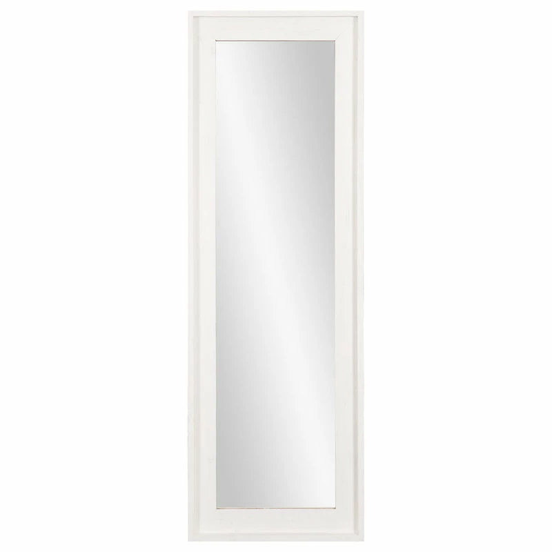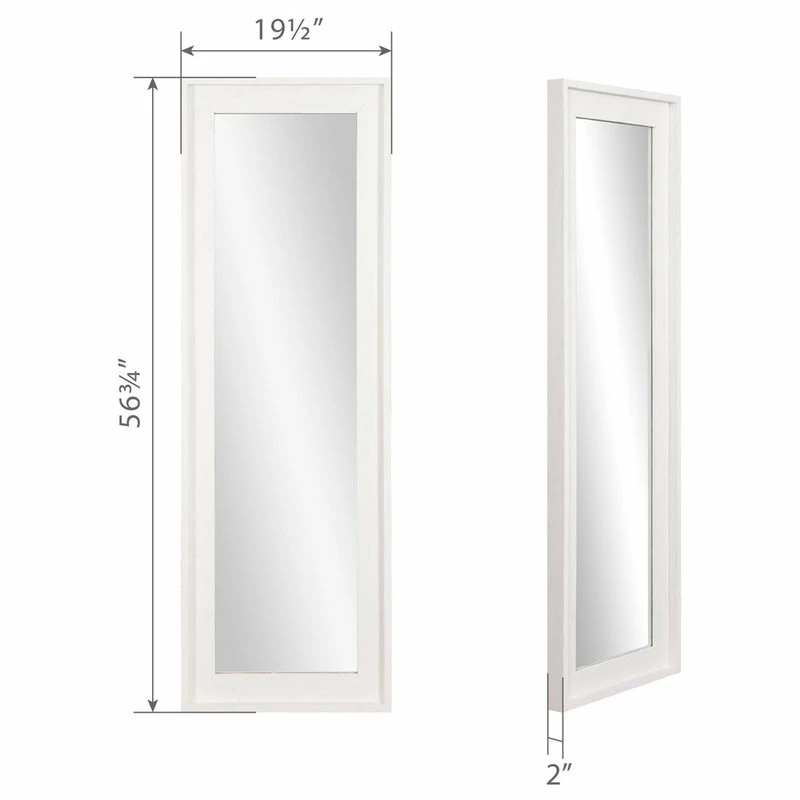 This stylish transitional 19×57 White Wash Wood Framed Full Length Wall or Leaner Mirror is framed in an elegant 2.75″ wide stacked frame. Finished in a white wash adds rustic charm and a modern farmhouse element to your space. This mirror is both polished and rustic that effortlessly pulls any room together. Hang securely to any wall surface With industrial hangers on the back that make installation a snap. Brighten up your space by placing this meticulously crafted mirror into your living room, entryway or bathroom. Frame measures 19.5 inches wide x 56.75 inches tall and mirror inner measures 14 inches x 51.25 inches.