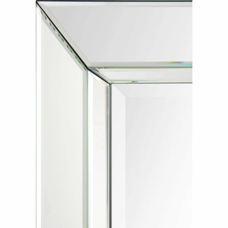 This all-glass mirror features a sleek design with some depth. This piece would look amazing in a Modern-style home. This wall mirror makes a grand statement in a living room, bedroom or entryway.
