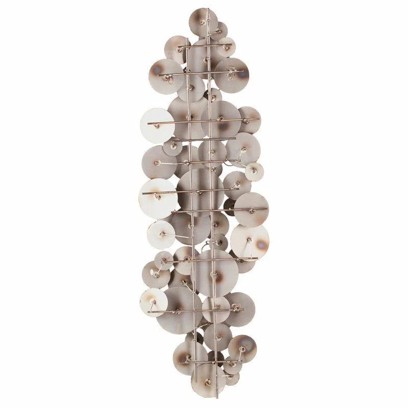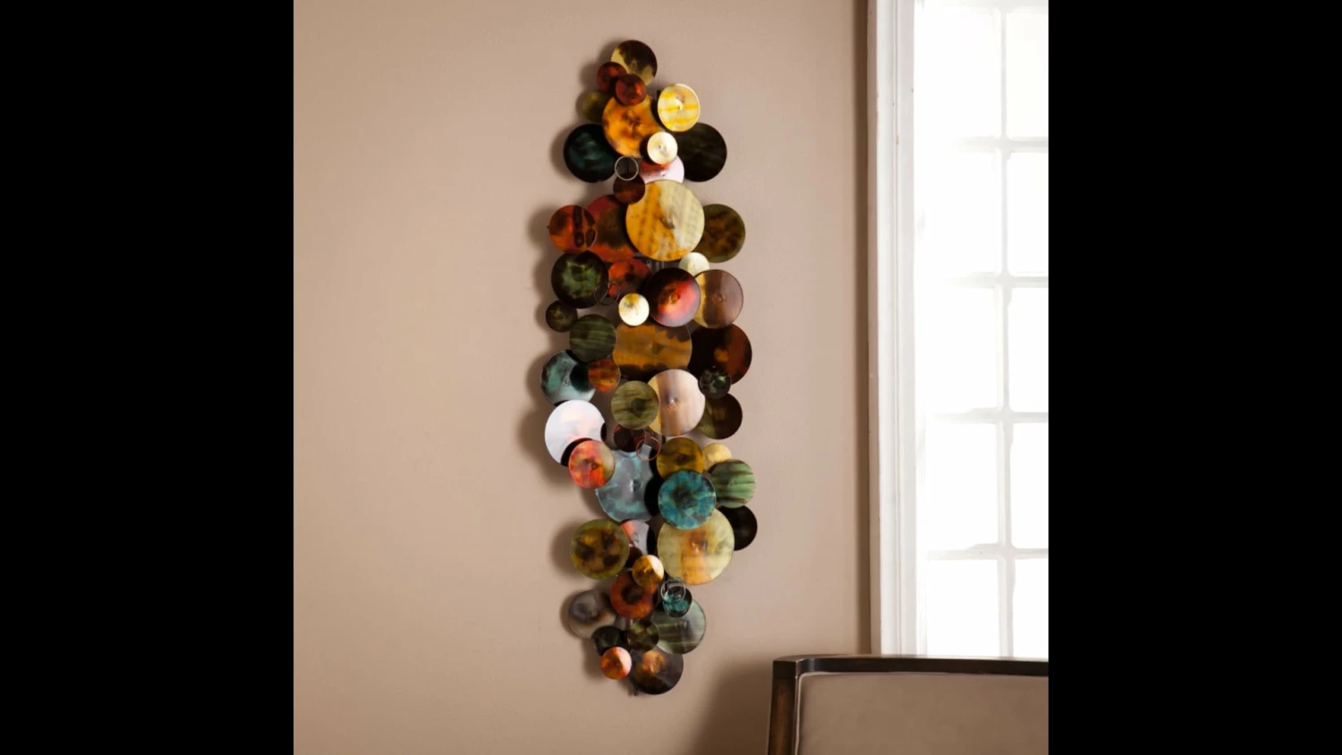 Sing a siren’s song with the reflective scales of this shimmering, contemporary style wall sculpture. Undulating circles vividly tempt the eye while the holographic hues swim, bouncing light into the room. Suspend the silhouette horizontally or vertically as your inner mermaid desires, sliding your decor to a utopian Atlantis.