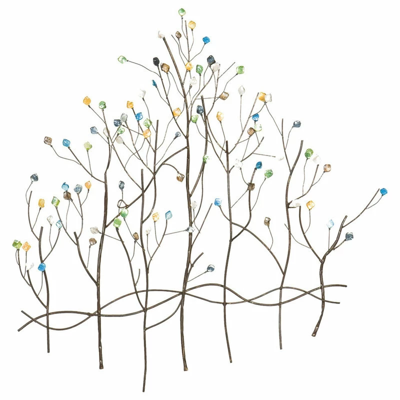 Grace your wall with this decorative gem tree wall sculpture and you’re sure to be mesmerized. The color variety among the gems is eye catching, and the three dimensional metal construction of the wall art is sure to be a focal point of any room.