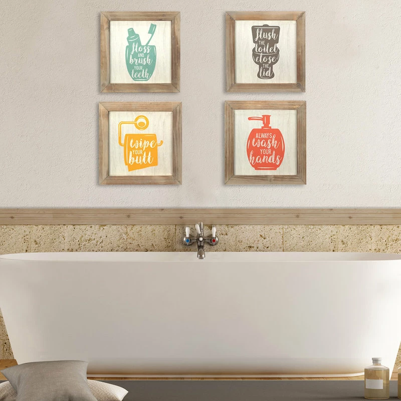 Be the first to review “Deals โญ Stratton Home Decor Set Of 4 -Floss, Flush, Wipe, Wash Wall Art ๐งจ” Cancel reply