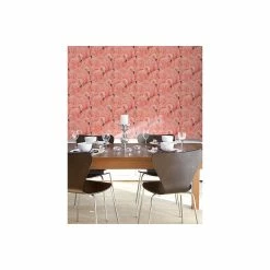 - A raised textured blown vinyl wall-covering featuring extravagant pink flamingos. Shown in shades of pink, peach and black.