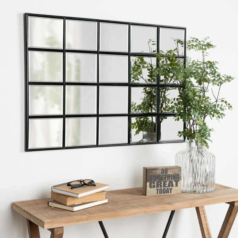 - This decorative framed windowpane mirror in a handsome black satin finish will bring traditional elegance to your home decor