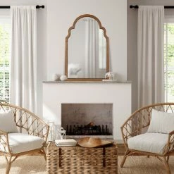 The Hogan wall mirror uses vintage charm to create a bold wall display in your home. The Hogan mirror features a beautiful, Moroccan-inspired arched shape, complete with scalloped corners on either side of the piece. This lovely design draws the eye into a breathtaking focal point, creating the ultimate statement for any wall. Its scalloped frame was crafted from a rich, premium poplar wood, giving it a robust quality and a sophisticated look. The Hogan mirror’s overall dimensions are 24 inches wide by 1 inch deep by 36 inches tall, creating a staggering display in your bedroom, entryway, living room, or office. You could also add the Hogan mirror to your bathroom to make a vanity. Adding a decorative mirror like the Hogan to your wall enhances the space it’s in by spreading light, making it appear more vibrant and dimensional. The elegant Hogan mirror hangs in only a matter of minutes, utilizing resilient metal D-ring hangers attached to the back of its poplar wood frame.