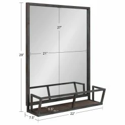 - Attached wood shelf is 22 inches wide and 5.5 inches deep; Mirror surface is 21 inches by 27 inches