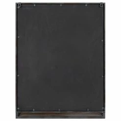 This framed mirror combines industrial chic home d?cor with functionality. This wall organizer is constructed of metal with a distressed black finish and has a 22 inch by 5.5 inch solid wood plank shelf. It already has two keyhole hangers attached on the back for easy display. The outer dimensions measure 22 inches across and 29 inches high with a depth of 7.5 inches from the wall. The decorative wall organizer contains a 21 inch by 27 inch mirror to check you appearance one final time before leaving the house. (You look fabulous!) This multi-functional wall hanging wall mirror is the perfect tool to organize to your office, kitchen, or entryway.