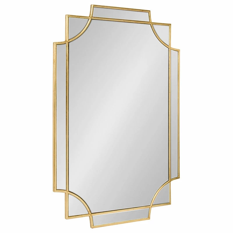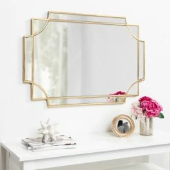 Glam up your home instantly with a fabulous ornate mirror! Add radiance, light and endless glamour to any room with the Minuette Wall Mirror by Kate and Laurel. Its brushed gold leaf finish creates an antique-inspired feel, while cutout corner accents along the inner and outer edges of the frame complete the look with added decorative detail. It is a beautiful addition to any wall and an essential element in your home decor. An easy way to revamp a space, the large 23.6 by 35.4-inch rectangle frame is the perfect size to add a stylish statement to a hallway bedroom or living room. The large format makes it a natural choice for your bathroom either as wall art or a practical and beautiful vanity mirror. The elegant shape frame creates a stylish alternative to a traditional rectangle and blends with other styles well, so it is sure to fit perfectly in a kitchen, hallway or dining room too.