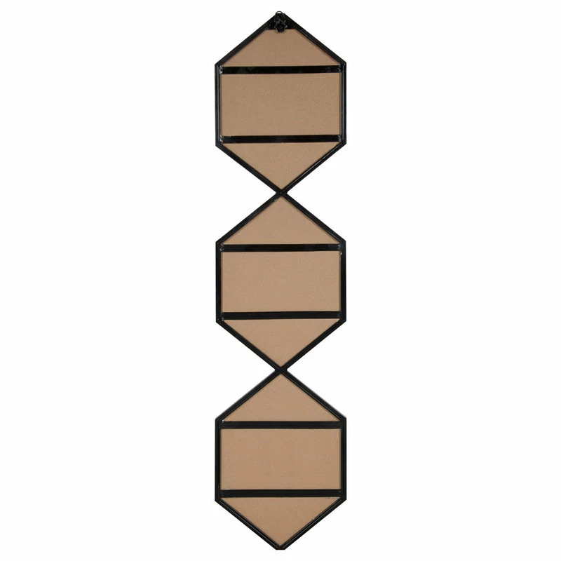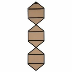 The narrow linear look of this decorative metal mirror is a beautifully unique accent piece for your home decor. Meant to hang vertically, this mirror will fit in a tall, narrow space or as part of a collection of decor displayed on a large wall. Solidly crafted of three metal hexagon shapes each holding its own beveled mirror, the Roycen wall mirror presents a gorgeous artistic value all of its own. The slim width and long height create a special look while the three mirrors enhance the depth and visual interest. Measuring 10-inches x 42-inches, it’s a perfect size or use more than one for a truly stunning panel wall display. A D-ring hanger is attached to the back metal frame for a secure wall mount. This gorgeous metal contemporary wall art piece will be the perfect fit for your existing decor theme in any room of the home!