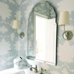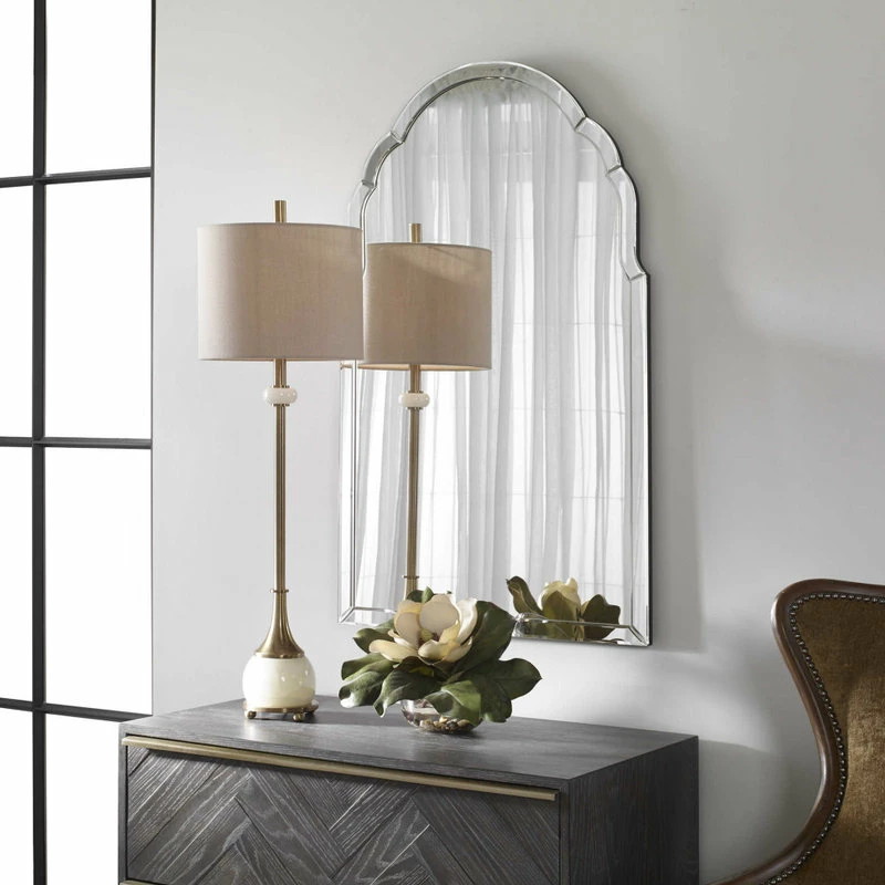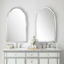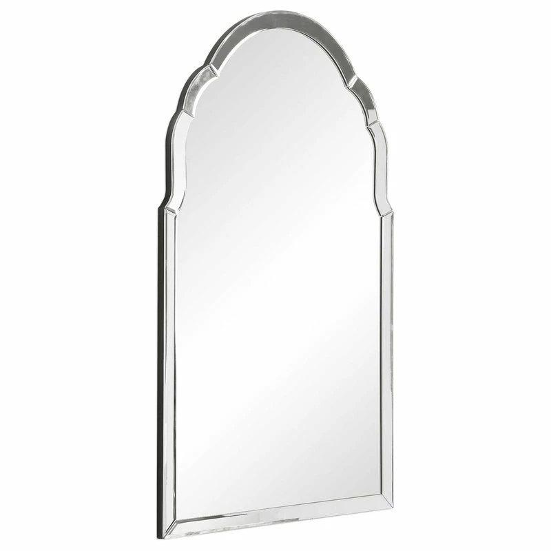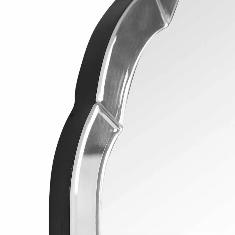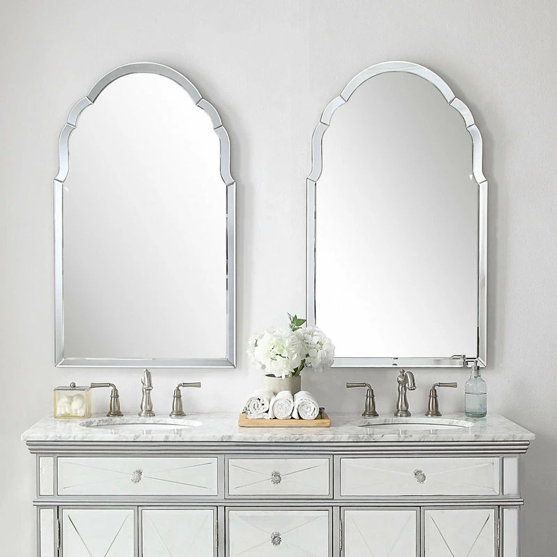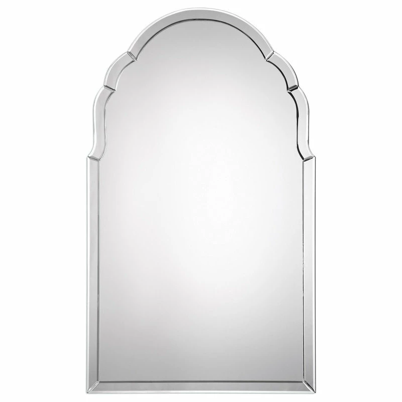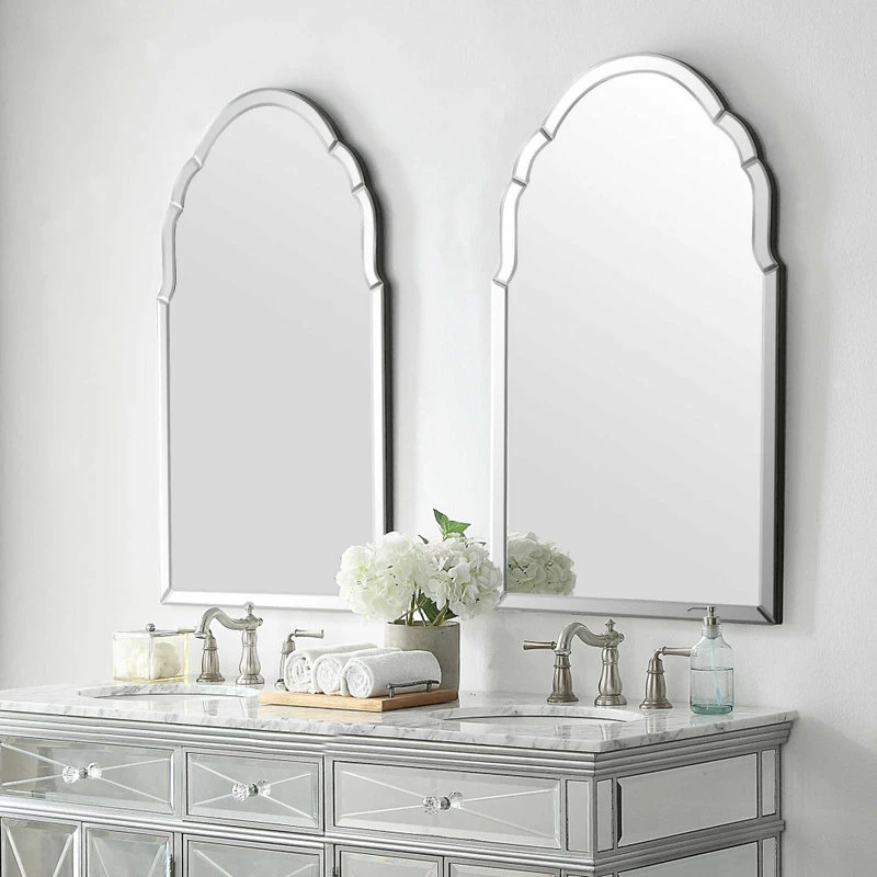 A timeless classic featuring an elegantly shaped arch. This frameless mirror is constructed of curved, hand beveled mirrors with a solid wood backing painted black. Perfect for any setting and will never go out of style. Our mirrors feature a state of the art back coating that makes them resistant to oxidation and discoloration. Properly weighted hardware included.