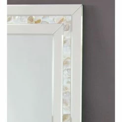 Add the finishing touch to your room with a stunning decorative wall mirror that will take your space from bland to glam. Our Mother of Pearl Framed Mirror was designed with simplicity in mind and features beveled details and touches of mother of pearl tiles that will add a touch of sophistication and tranquility to your space. Hang this mirror in your entry way for instant “wow” factor or integrate it into your gallery wall to complete a look. The Mother of Pearl Framed Mirror measures 35 inches wide and 24 inches tall.