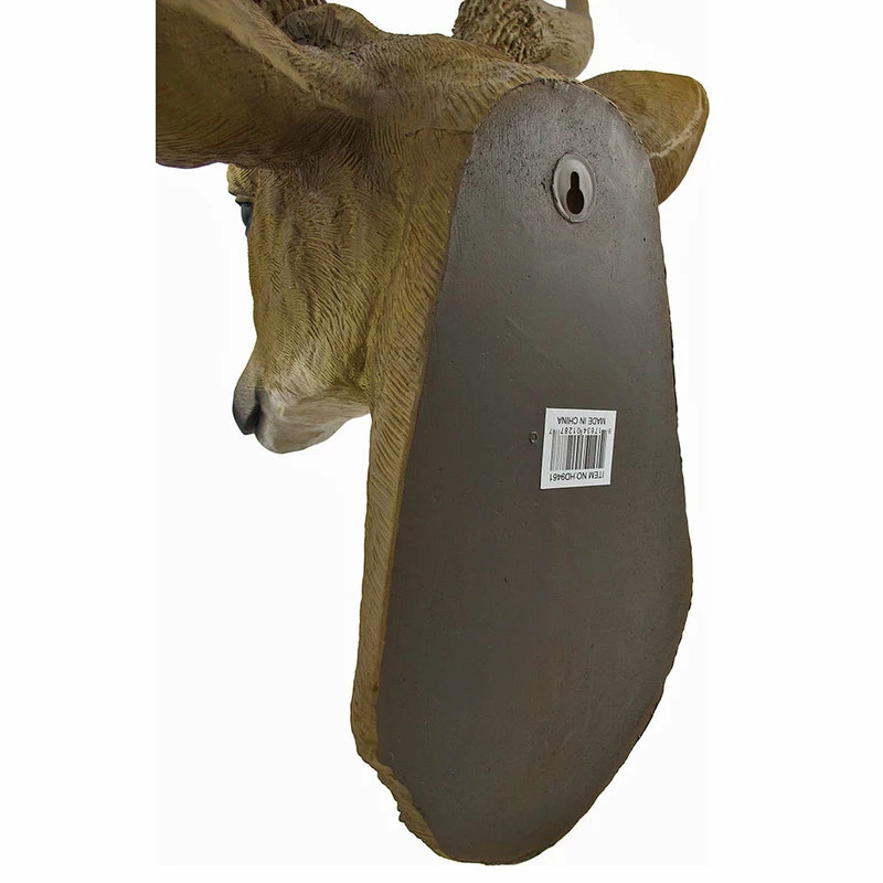 This awesome, cold cast resin replica 8 point buck wall mount is a perfect addition to any room with a masculine theme. The head measures 23 inches tall, 16 inches wide and 8 1/2 inches deep. The detail is incredible, down to the hand painted eyes. This deer head is brand new, and makes a great gift for any hunting fan or nature lover. The antlers are removable to save space in shipping.